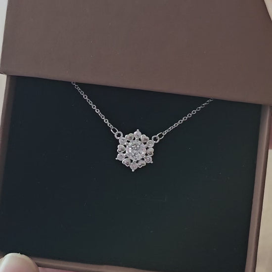 Floral Halo Pendant Necklace – S925 Sterling Silver