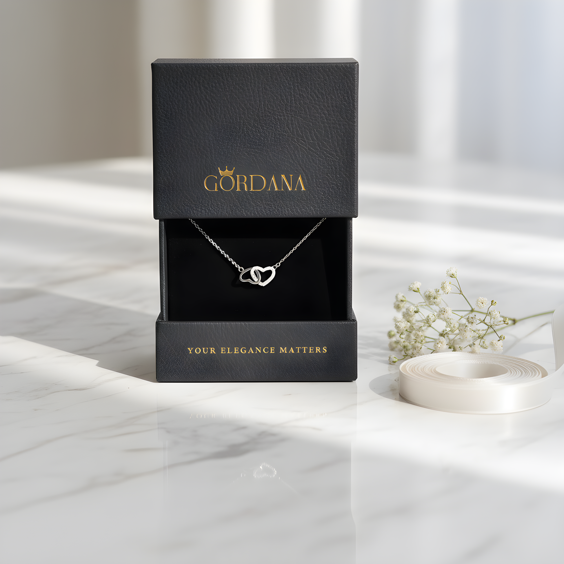 A timeless symbol of connection and everlasting love, the Interlocking Heart Necklace pairs modern simplicity with meaningful design. Crafted from 925 sterling silver, the two entwined hearts—one polished, one pavé‑set with shimmering stones—create the perfect everyday piece for any occasion.