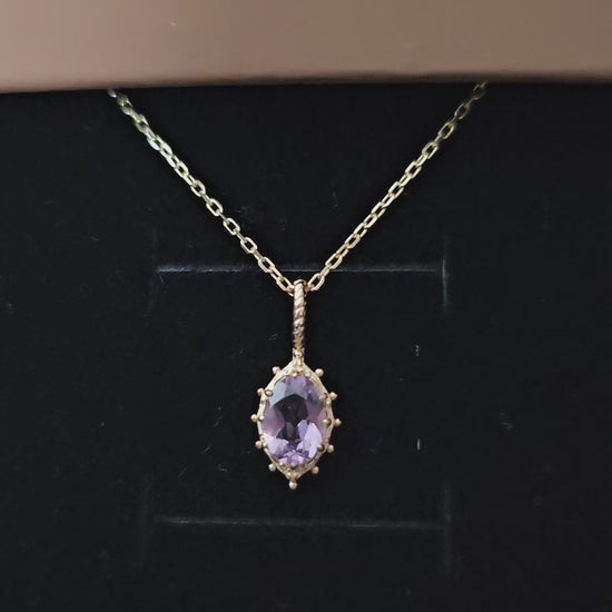Oval Amethyst Pendant Necklace – Gold Plated S925 Sterling Silver